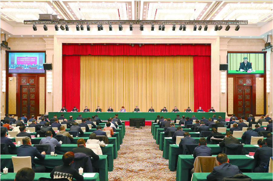 1月14日,自治区机构改革动员部署会议在乌鲁木齐召开。自治区党委书记马兴瑞出席会议并讲话。 石榴云/新疆日报记者 崔志坚 摄