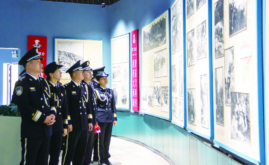 活动期间,司法警察来到吐鲁番地质博物馆参观,重温地质历史,缅怀为地质勘探作出贡献的先辈,从先辈的光荣事迹中汲取前进力量。阿不都沙拉木·白克力 摄
