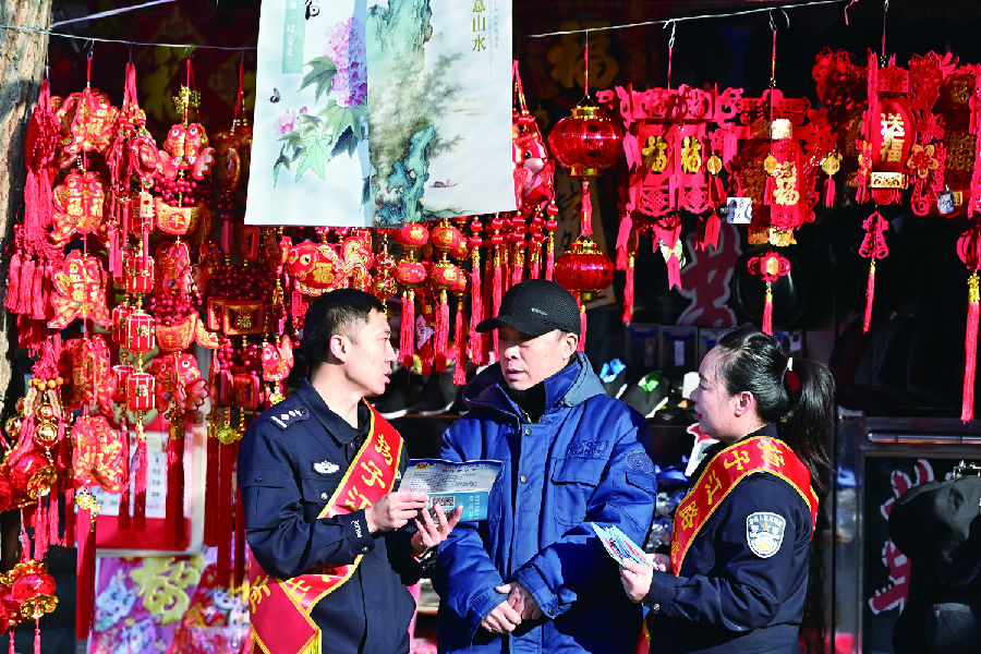 图为乌市公安局沙区分局扬子江路派出所民警在红山转盘地下通道向商户宣传反诈知识。 石榴云/新疆法治报记者 单坤 摄