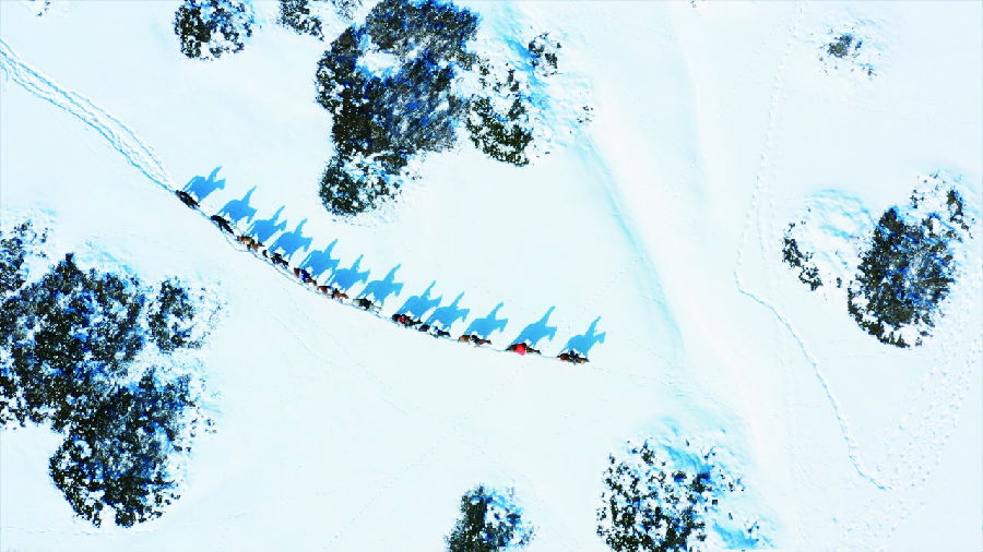 2023年12月,罗园渠带队的冬季雪骑定制团行走在苍茫雪地上。