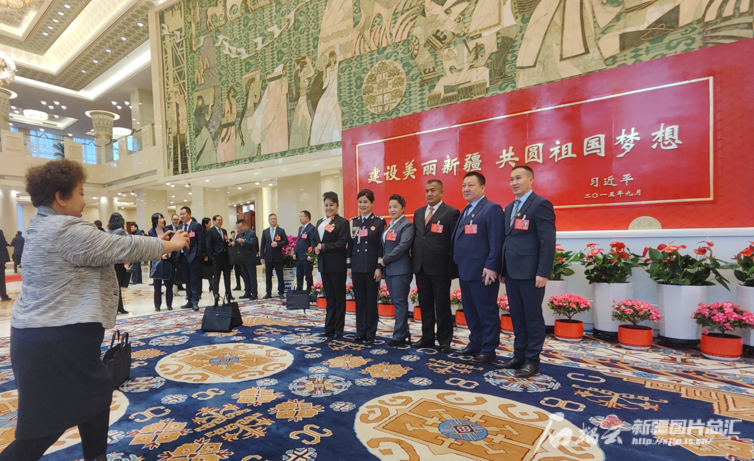 1月29日上午,自治区政协十三届二次会议在新疆人民会堂开幕。开幕大会前,政协委员在会场合影。天山网-新疆日报记者 谢龙摄