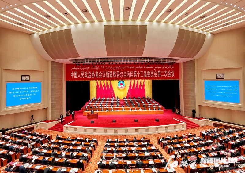 1月29日上午,自治区政协十三届二次会议在新疆人民会堂开幕。天山网-新疆日报记者 蔡增乐 摄