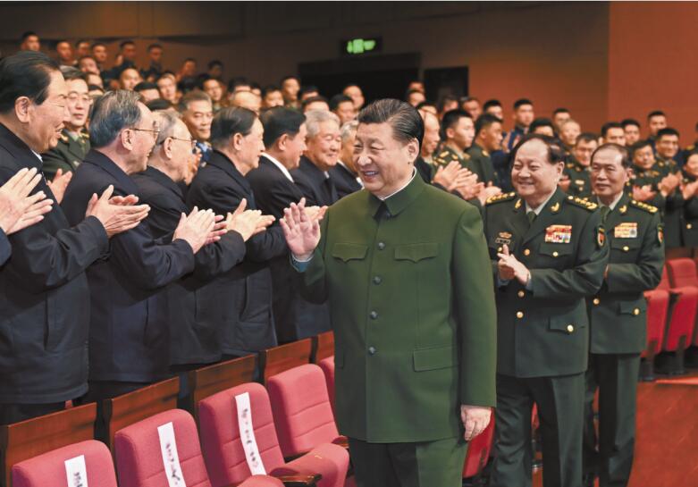 下午4时许,习近平来到老同志中间,全场响起热烈掌声。习近平关切询问他们的身体和生活情况,共同回顾在党的二十大精神指引下,过去一年来党、国家、军队事业取得的重大成就。老同志们一致表示,要更加紧密地团结在以习近平同志为核心的党中央周围,坚持以习近平新时代中国特色社会主义思想为指导,深入贯彻习近平强军思想,深刻领悟“两个确立”的决定性意义,增强“四个意识”、坚定“四个自信”、做到“两个维护”,贯彻军委主席负责制,坚定信心,振奋精神,团结奋进,为打好实现建军一百年奋斗目标攻坚战,为以中国式现代化全面推进强国建设、民族复兴伟业作出新的贡献。
