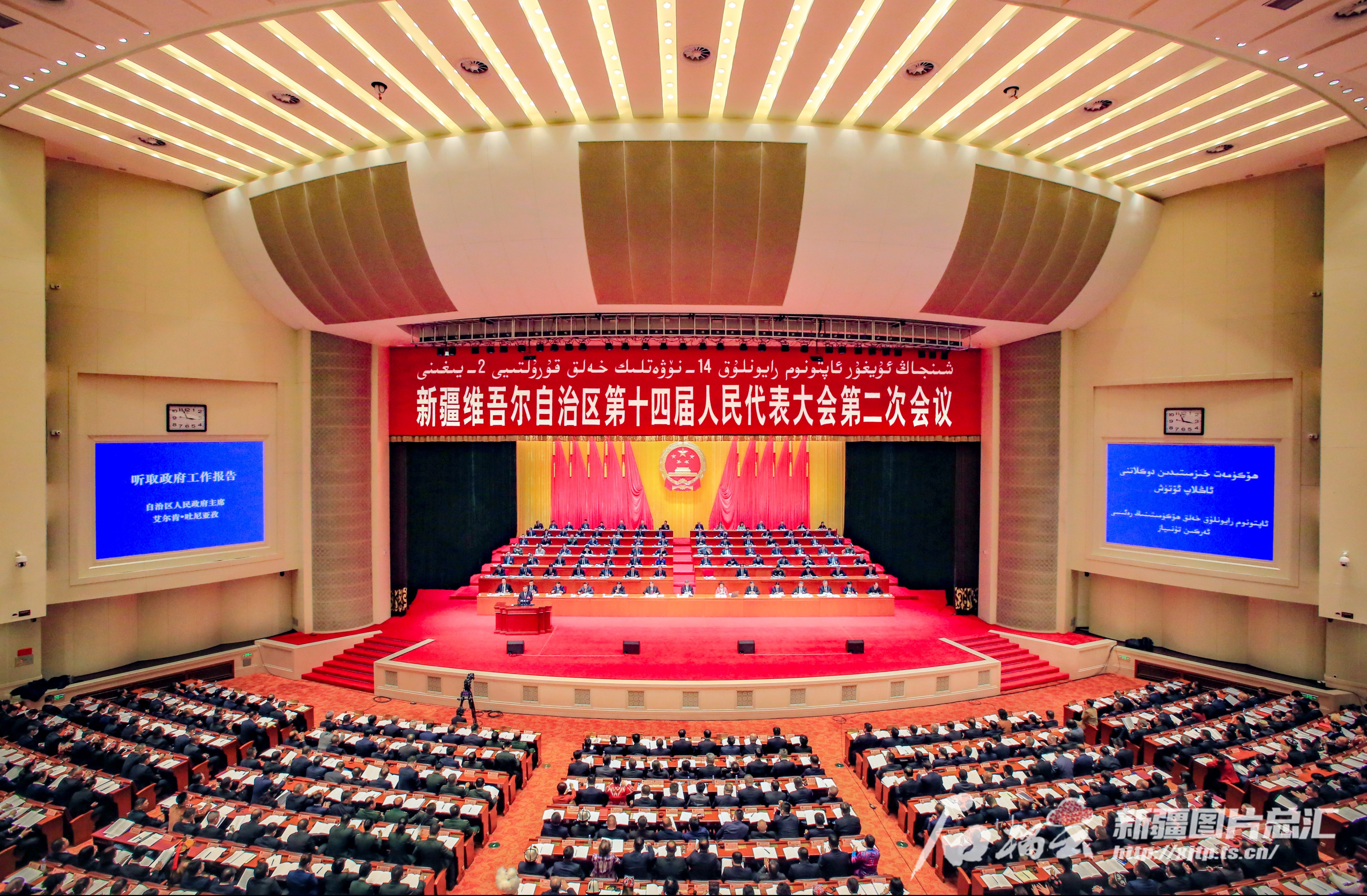 1月30日,新疆维吾尔自治区第十四届人民代表大会第二次会议在新疆人民会堂开幕。图为会议现场。 天山网-新疆日报记者 蔡增乐摄