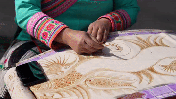 ↑蜡染艺人精心制作图案