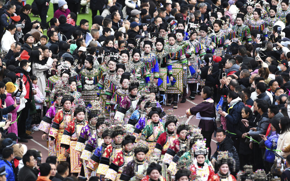 ↑少数民族盛装美轮美奂