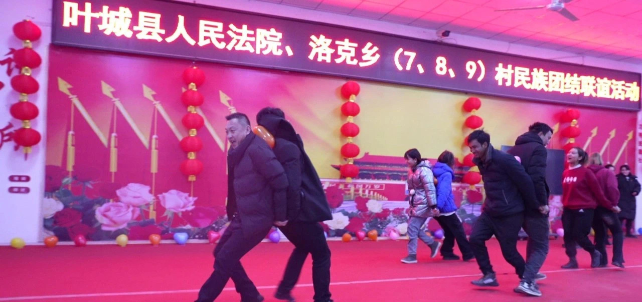 春节将至,为促进民族团结,加强各族群众之间的沟通交流,铸牢中华民族共同体意识。2月3日,叶城县人民法院与洛克乡7、8、9村开展“迎新春·民族团结一家亲”联谊活动,全体干警与村民欢聚一堂,话团结、聊收获,在载歌载舞、欢声笑语中共迎新春。联谊活动以歌曲合唱《祖国不会忘记》拉开序幕,干警和村民自编、自导、自演的舞蹈科目三、歌曲《相信自己》等节目轮番上演,台上表演者倾情演出,台下观众欢声笑语,干警与村民参加各种互动小游戏,夹玻璃球、背靠背运气球等将联谊活动推向了高潮,现场加油呐喊声、欢笑声此起彼伏,大家在欢声笑语中增进了感情。