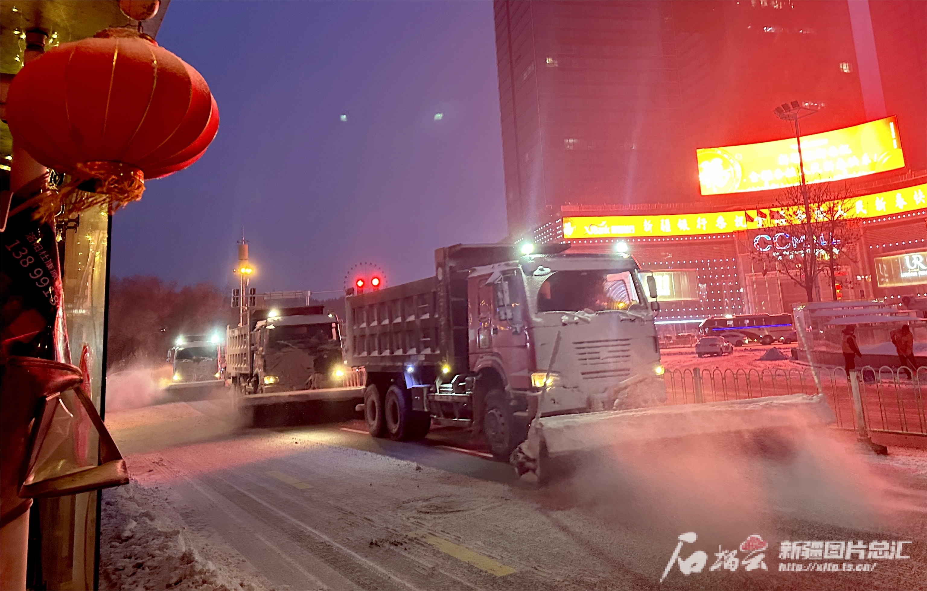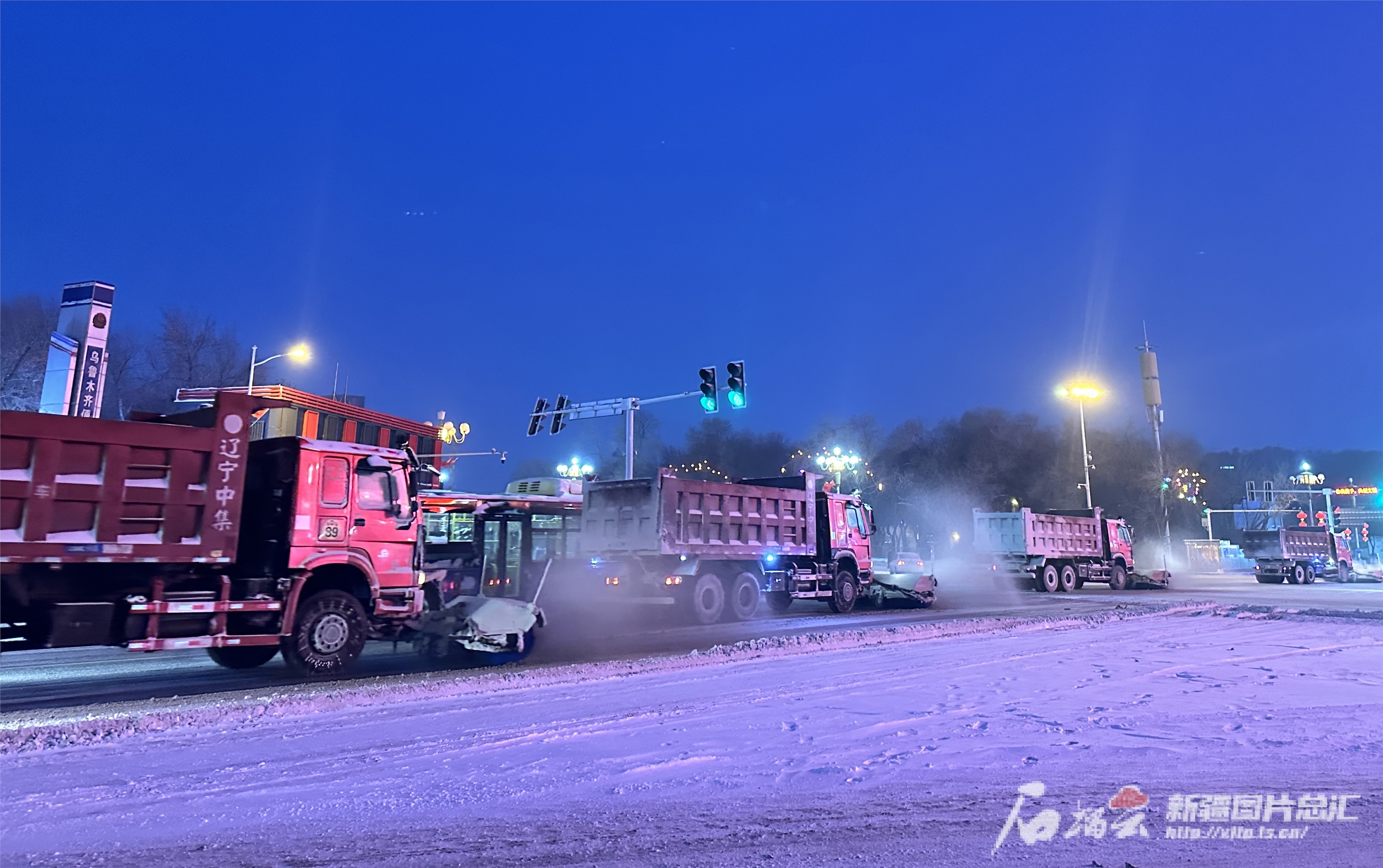 受强冷空气影响,2月16日下午乌鲁木齐市开始降温降雪,环卫部门及时启动应急响应,安排人员机械全部上路不间断清扫道路积雪,确保城市道路畅通,市民出行安全。(天山网-新疆日报记者 韩亮 摄)