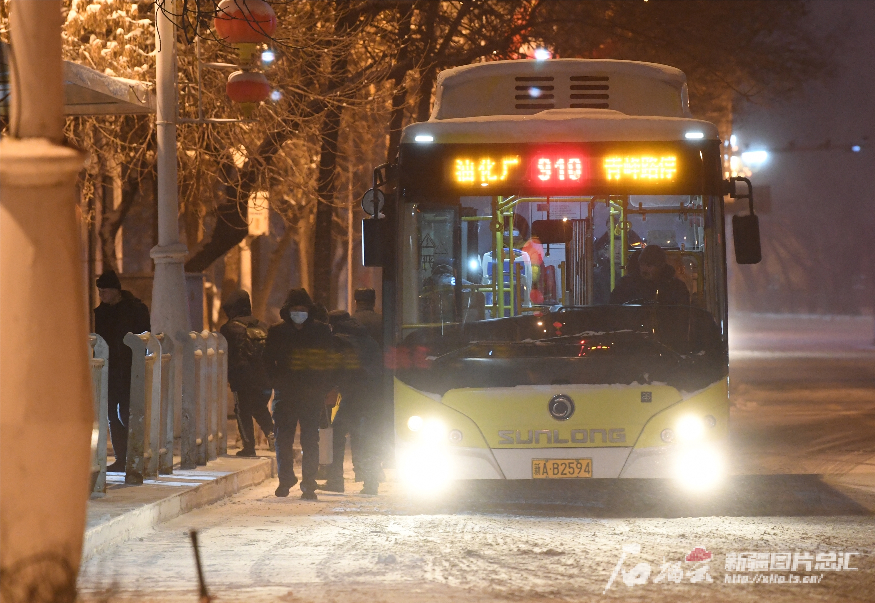 2月17日清晨,乌鲁木齐市民乘坐公交车出行。
