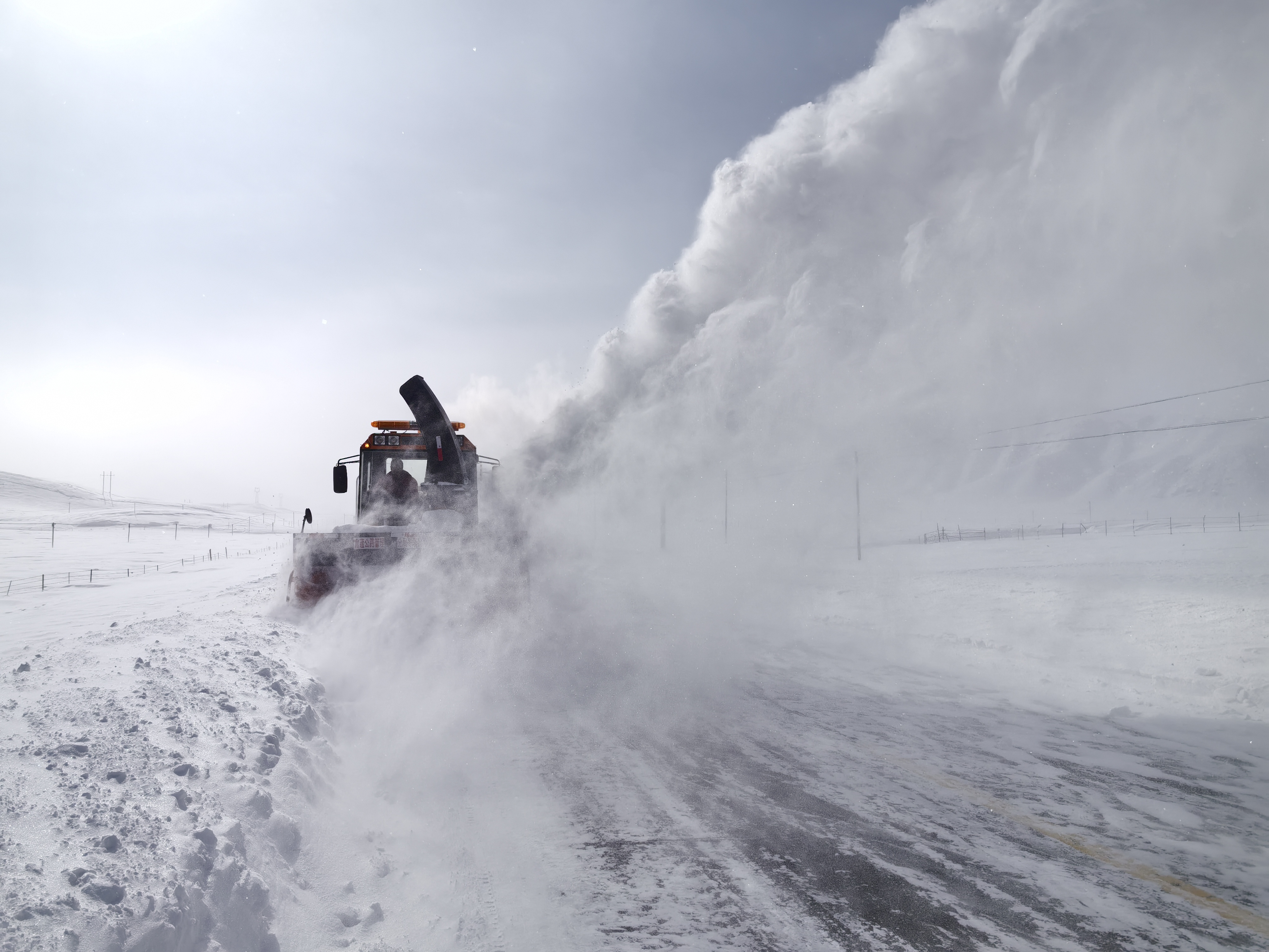 2月17日,清雪车在S226线富蕴至可可托海路段作业。2月16日至17日,阿勒泰地区迎来降温降雪天气,阿勒泰公路管理局富蕴分局及时安排清雪,全力保障道路通畅。 阿依多斯·阿根别克 摄