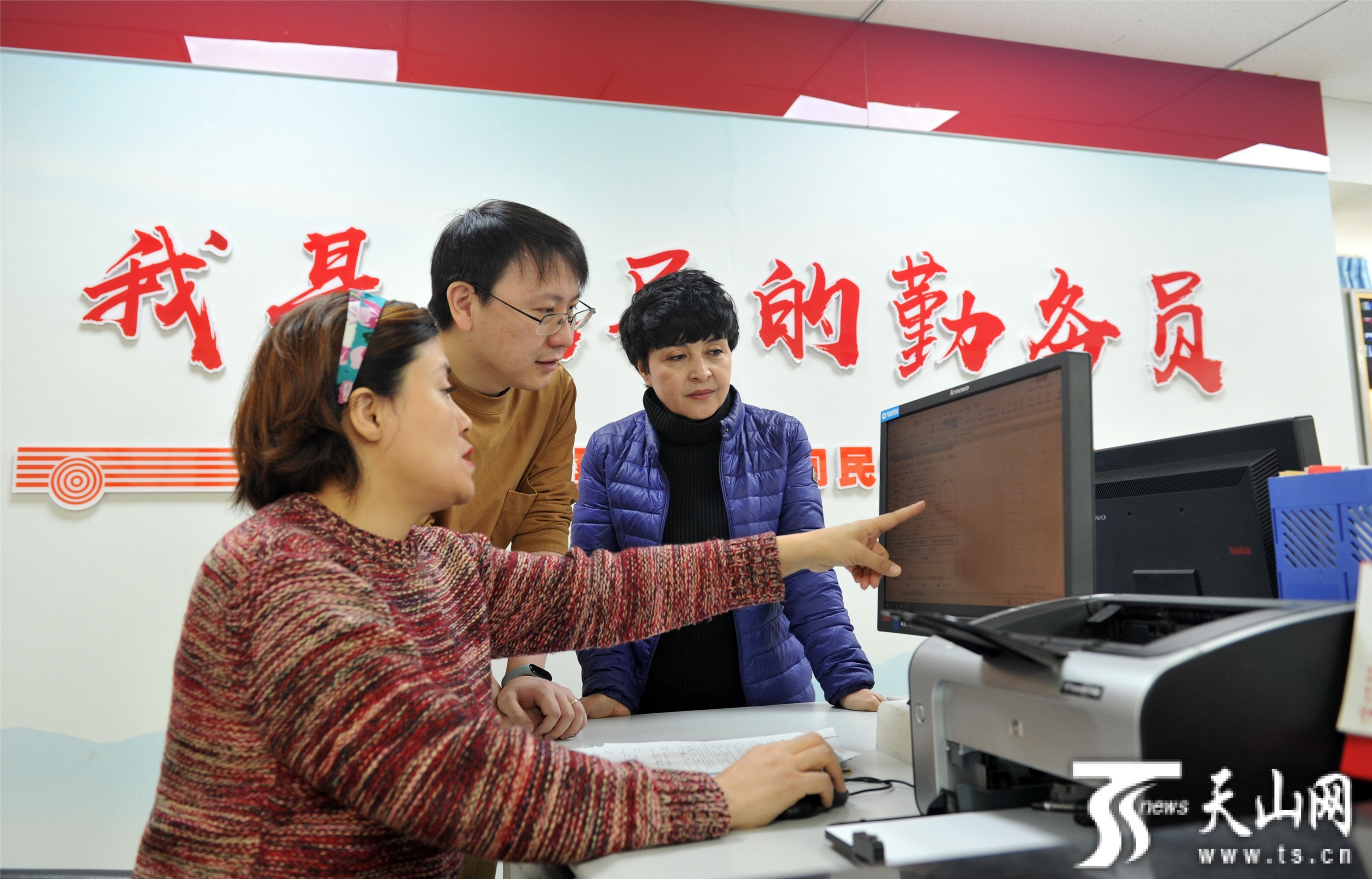 2月18日,乌鲁木齐市天山区大小西门街道人民路社区民政专干为居民办理相关业务。 天山网-新疆日报记者 秦梅花摄