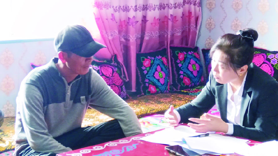 听完李晓娟的话,夏某点点头,笑了。这时,帕某的妻子提来一壶奶茶,屋里顿时茶香四溢,现场氛围一下子变得轻松起来。大家聊了些牛羊饲养、村中杂事后,李晓娟才话转正题。