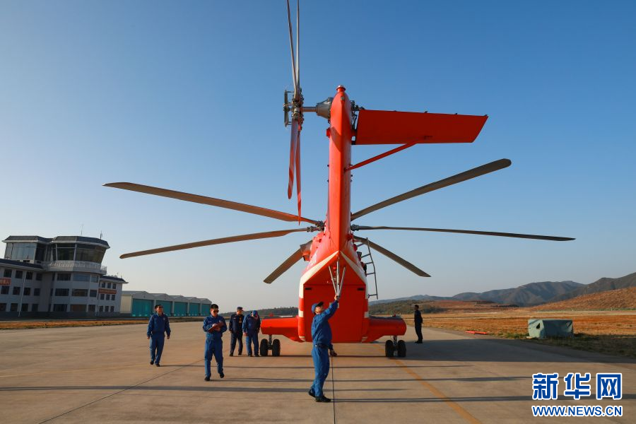 飞行员正在检查接收直升机(2月21日摄)。新华网发(张宇 摄)