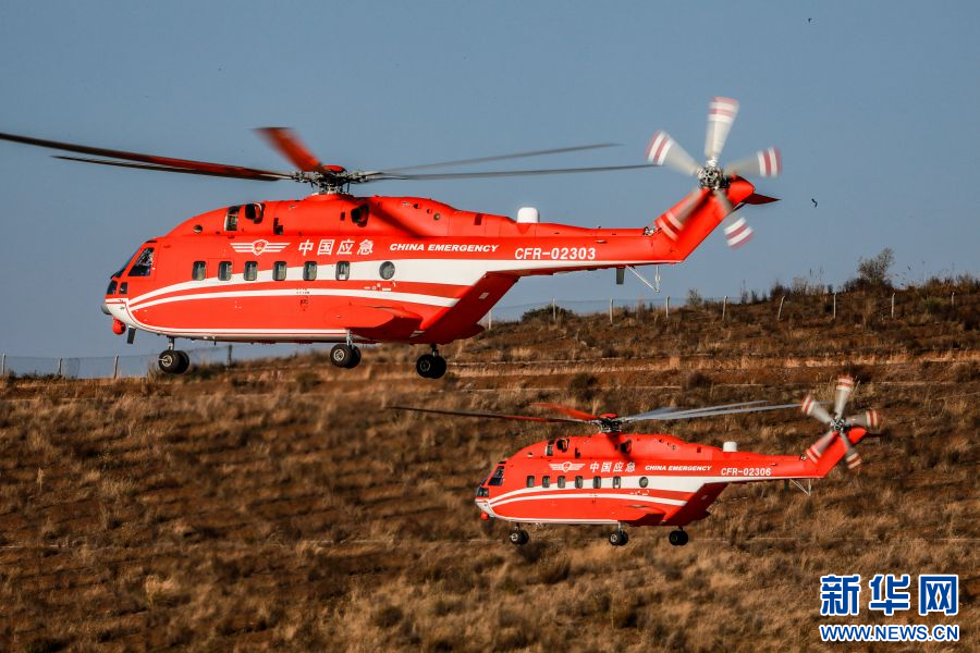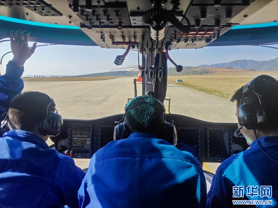 直升机正在空中悬停(2月21日摄)。新华网发(张宇 摄)