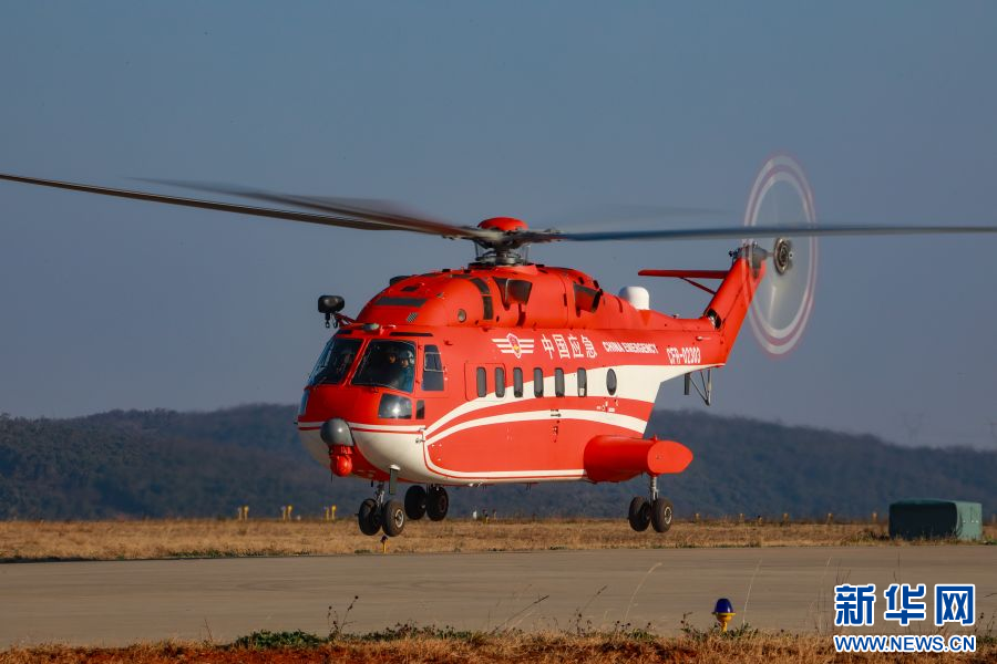 直升机起飞(2月21日摄)。新华网发(张宇 摄)