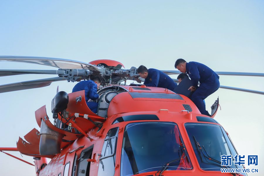 机务人员正在维护检查直升机(2月21日摄)。新华网发(孙锦雄 摄)