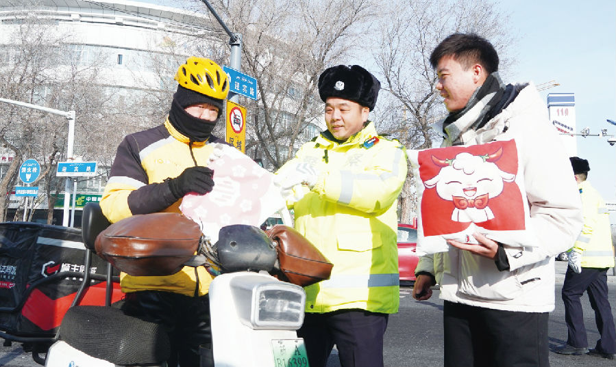 2月28日,乌鲁木齐市公安局交警支队高新区(新市区)大队在北京路和迎宾路交会路口开展“送你一朵小红花 寻找‘城市文明合伙人’”活动。