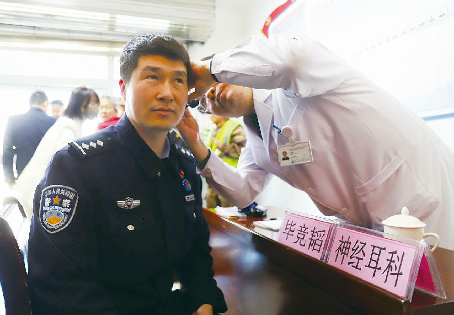 3月14日,自治区总工会邀请以北京市医疗专家为主的医疗队,来到新疆出入境边防检查总站阿克苏边境管理支队开展义诊活动。其间,医疗专家们深入边境派出所、护边员执勤点、牧民放牧点,通过问诊、查体、教授自救方法等方式,为大家送去关爱和健康。 王举南 摄