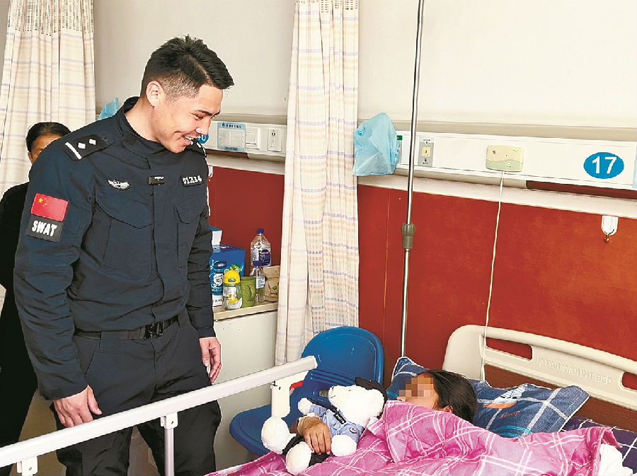 “小菲,希望你快快恢复,好不好?”3月20日,在新疆医科大学第一附属医院儿科综合病房,看着躺在病床上的小菲(化名),乌鲁木齐市公安局特警五支队民警别尔德汗·哈力克笑着说。