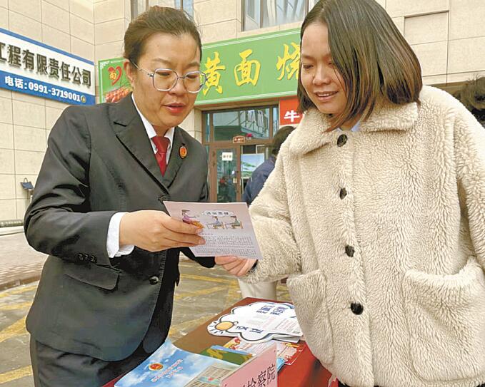 近日,乌市头屯河区人民检察院检察官向辖区群众讲解民生保障法律法规。 杨文凤 摄