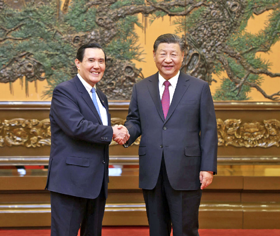 4月10日下午,中共中央总书记习近平在北京会见马英九一行。