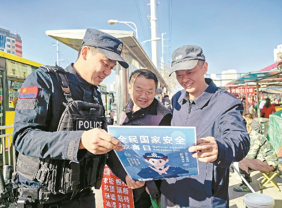 4月7日,乌鲁木齐市公安局特警七支队二大队民警向群众讲解国家安全知识。