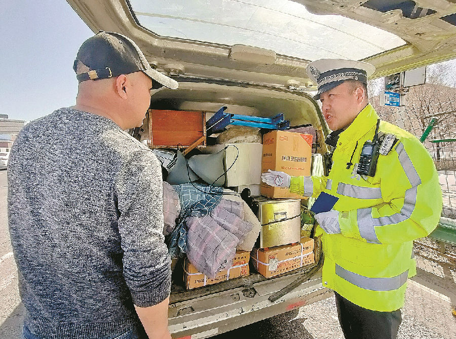 4月10日18时许,乌鲁木齐市公安局交警支队快速路大队外环路中队民警对客货混装的驾驶人批评教育。为做好高架桥、快速路交通秩序管理,当日,外环路中队组织警力在机场快速路严查客货混装、驾乘人员未系安全带等违法行为。 石榴云/新疆法制报记者 单坤 摄
