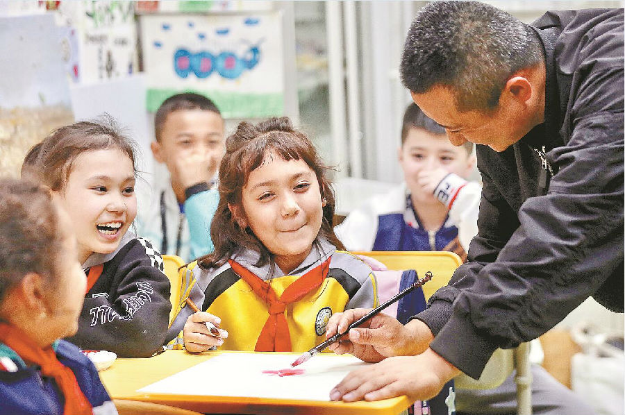 作为春季的最后一个节气,谷雨象征着暮春已到,初夏将至。谷雨前后正是牡丹花开的重要时段,因此,牡丹花也被称为“谷雨花”。在老师的指导下,孩子们用毛笔认真描绘着他们心中的牡丹花。 石榴云/新疆日报记者 李瑞 摄