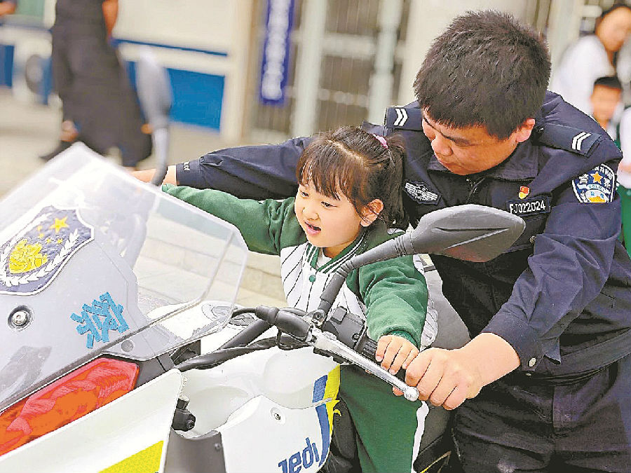 A+ | a4月15日,兵团第二师铁门关市第二幼儿园小朋友体验警用摩托车。当天,师市库尔勒垦区公安局交警大队举办“警幼零距离,安全伴‘童’行”警营开放日活动,通过展示讲解日常工作内容、警用装备使用方式等,带领小朋友们感受警营文化,学习交通安全知识,培养遵守交通法规的良好习惯。 石榴云/新疆法治报记者 任洪 通讯员 李积浩 摄