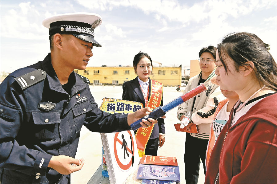 为增强准机动车驾驶人的文明出行意识,筑起交通安全防线,乌市公安局交警支队沙依巴克区大队在辖区驾校开展交通安全宣传活动。民警通过悬挂宣传横幅、张贴海报等方式,向学员宣传开车不系安全带的危害,引导他们杜绝酒驾醉驾、无证驾驶、疲劳驾驶、超速超员等交通违法行为,自觉养成严格遵守道路交通法律法规的习惯。 石榴云/新疆法治报记者 单坤 摄