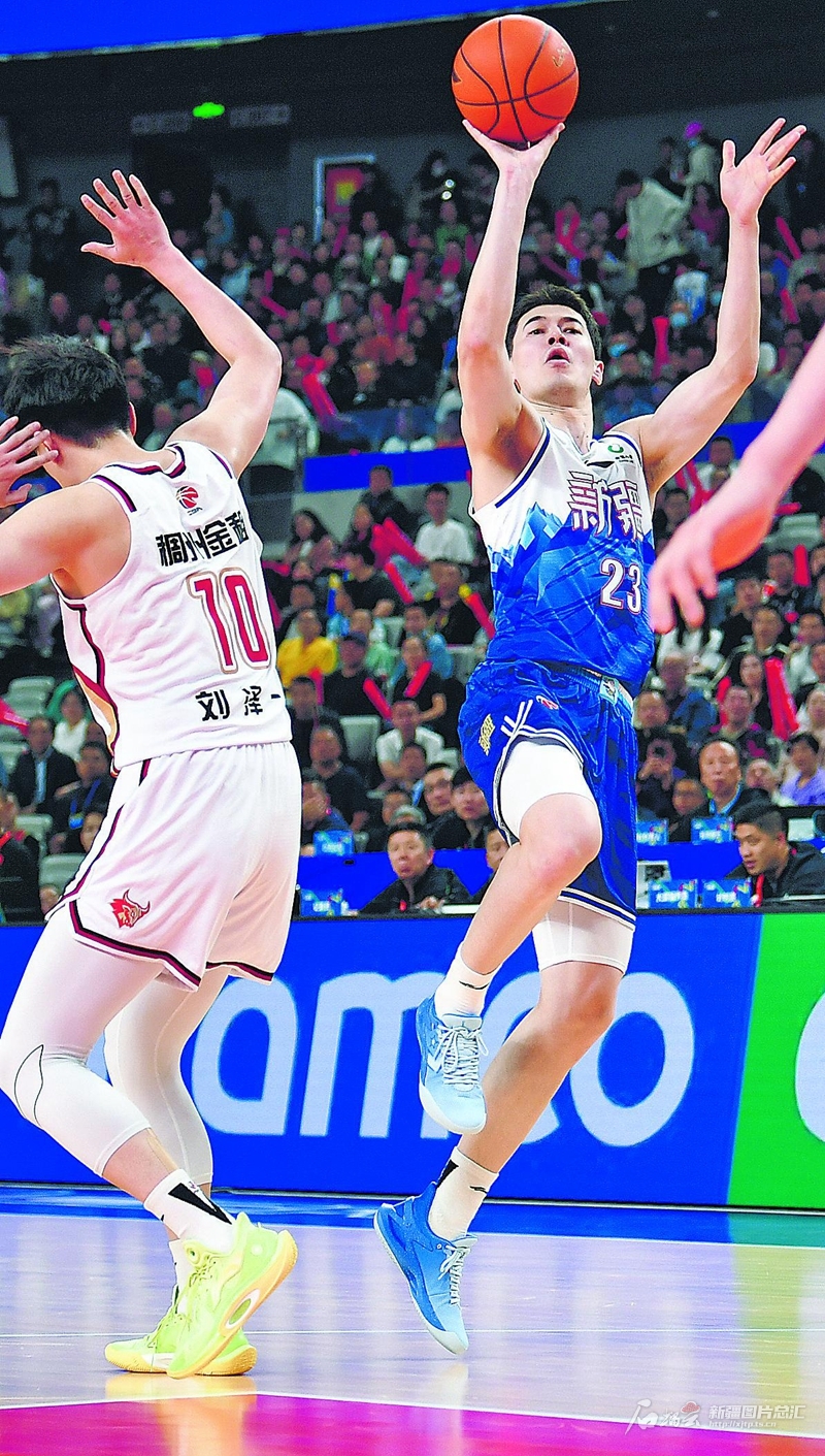 5月2日,2023—2024赛季中国男子篮球职业联赛半决赛在乌鲁木齐奥体中心举行,坐镇主场的新疆伊力特队最终以125∶90大比分战胜浙江稠州金租队,取得首场胜利。天山网-新疆日报记者邹懿摄