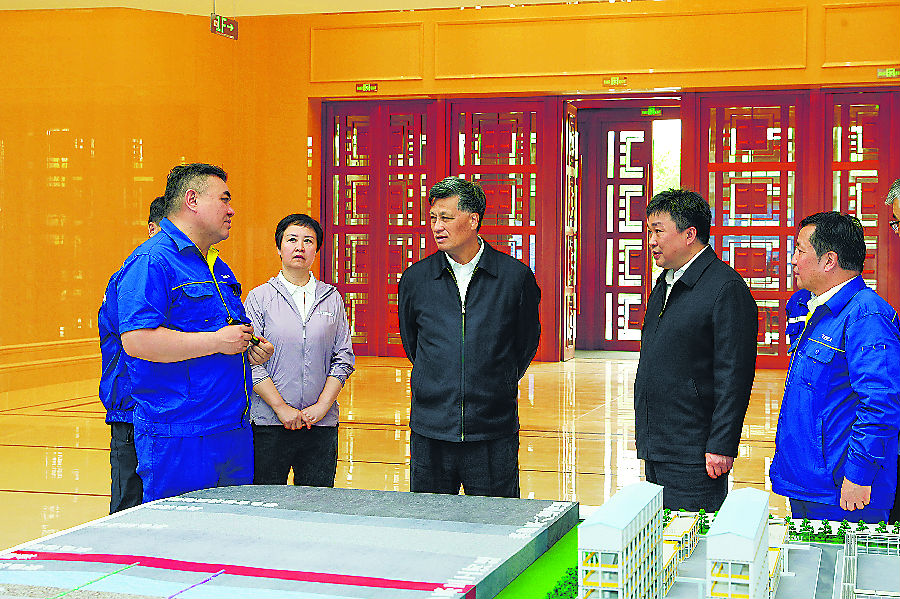 5月5日,自治区党委书记马兴瑞在准东经济技术开发区调研。这是马兴瑞来到特变电工煤基新材料高质量发展产业园了解项目建设情况。