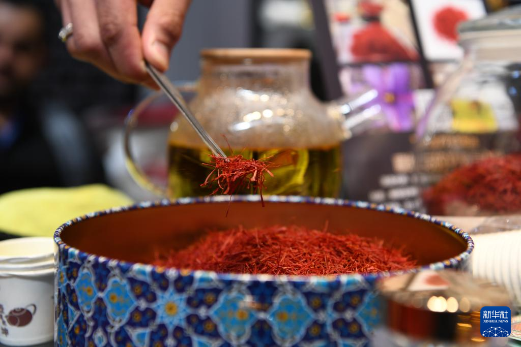 5月20日,在第八届中俄博览会上,参会人员展示伊朗的藏红花。新华社记者 王松 摄