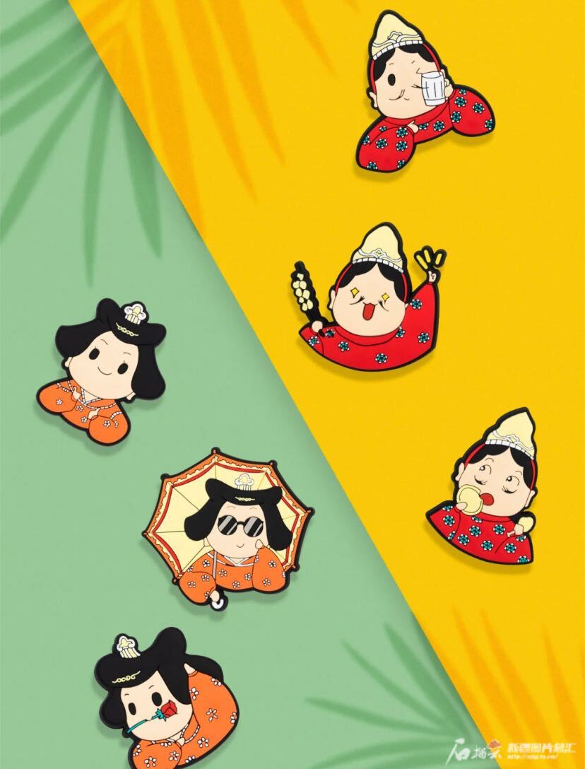 取材于第20窟壁画中高昌供养人形象的“小智”“小慧”冰箱贴。图片由新疆博物馆文创部提供