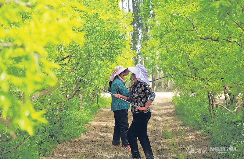5月16日,阿瓦提县塔木托格拉克镇托万克赛克孜奥塔克村果农在给枣树摘心抹芽。眼下正值红枣田间管理关键时期,阿瓦提县各乡镇果农抢抓农时,为今年红枣丰收打基础。 □包良廷摄