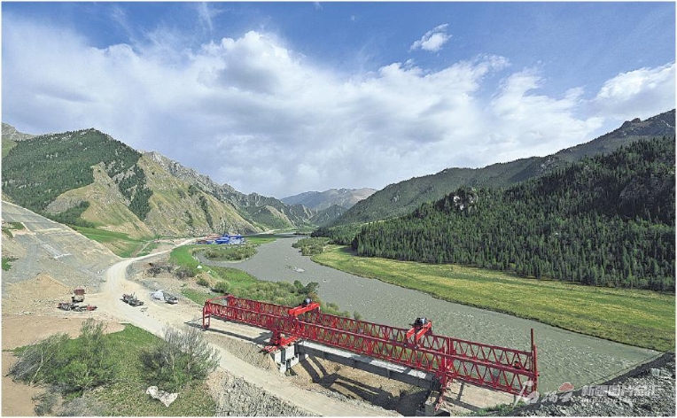 5月18日,在轮台县策大雅—和静县S340霍尔古吐—和静县红旗牧场旅游公路施工现场,施工方正在架桥。该公路全长129公里,是巴音郭楞蒙古自治州重要的“交旅融合”交通基础设施项目之一。目前已完成整体工程量的80%,预计明年7月竣工通车。□确·胡热摄