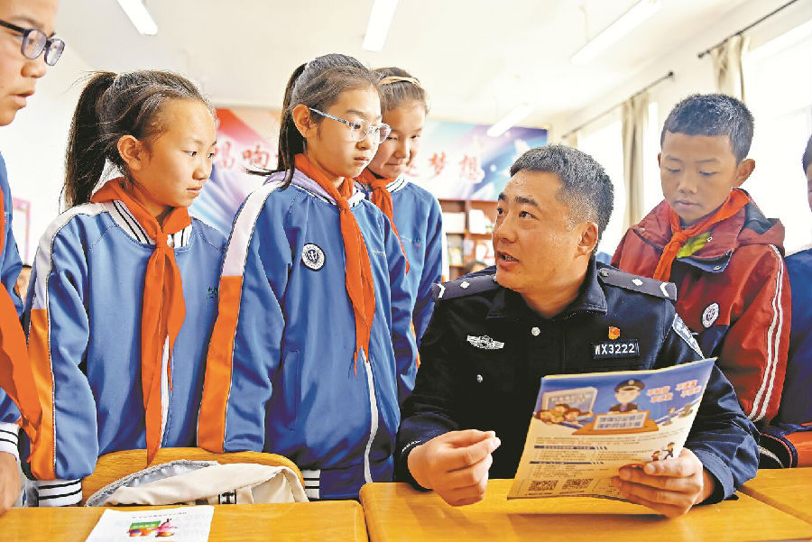 当日,乌鲁木齐县公安局民辅警到辖区中小学校开展防范电信网络诈骗宣传活动,针对学生群体特点,用新颖活泼的授课方式,让学生们了解什么是新型电信网络诈骗、如何防范新型电信网络诈骗。 石榴云/新疆法治报记者 单坤 摄