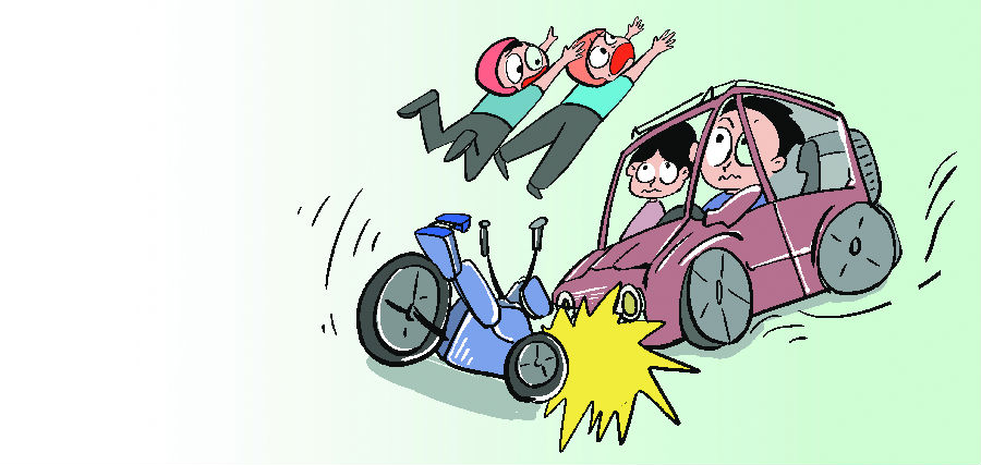 归家心切的司机撞上过于自信的骑行者 电动车上两人重摔在地