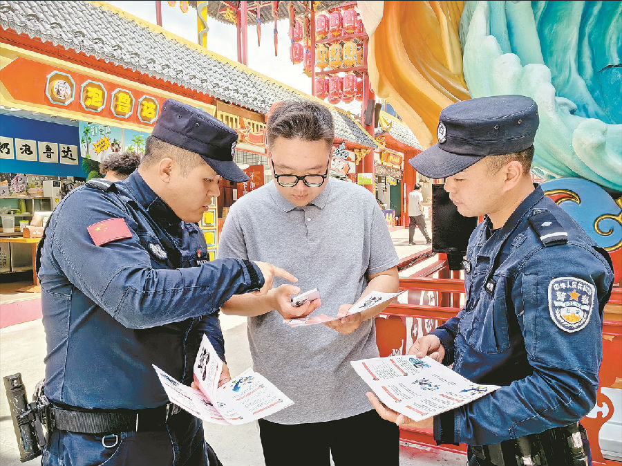 A+ | a5月28日,乌鲁木齐市公安局特警七支队在天山明月城开展“新疆公安微警务”小程序宣传推广活动,通过发放宣传单、现场指导操作等方式,帮助群众了解手机办理公安业务的方法和流程,切实提升群众知晓率和使用率。图为民警向群众讲解“新疆公安微警务”小程序使用方法。