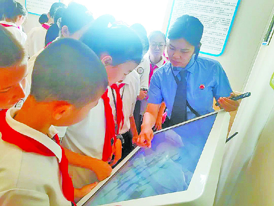 近日,阿克苏地区两级检察机关结合“检护民生”专项行动,举办“检教同行,共护成长”检察开放日活动。图为温宿县人民检察院检察官向辖区学生代表介绍未成年人检察“诉心”工作室,让学生直观地了解未成年人检察职能。