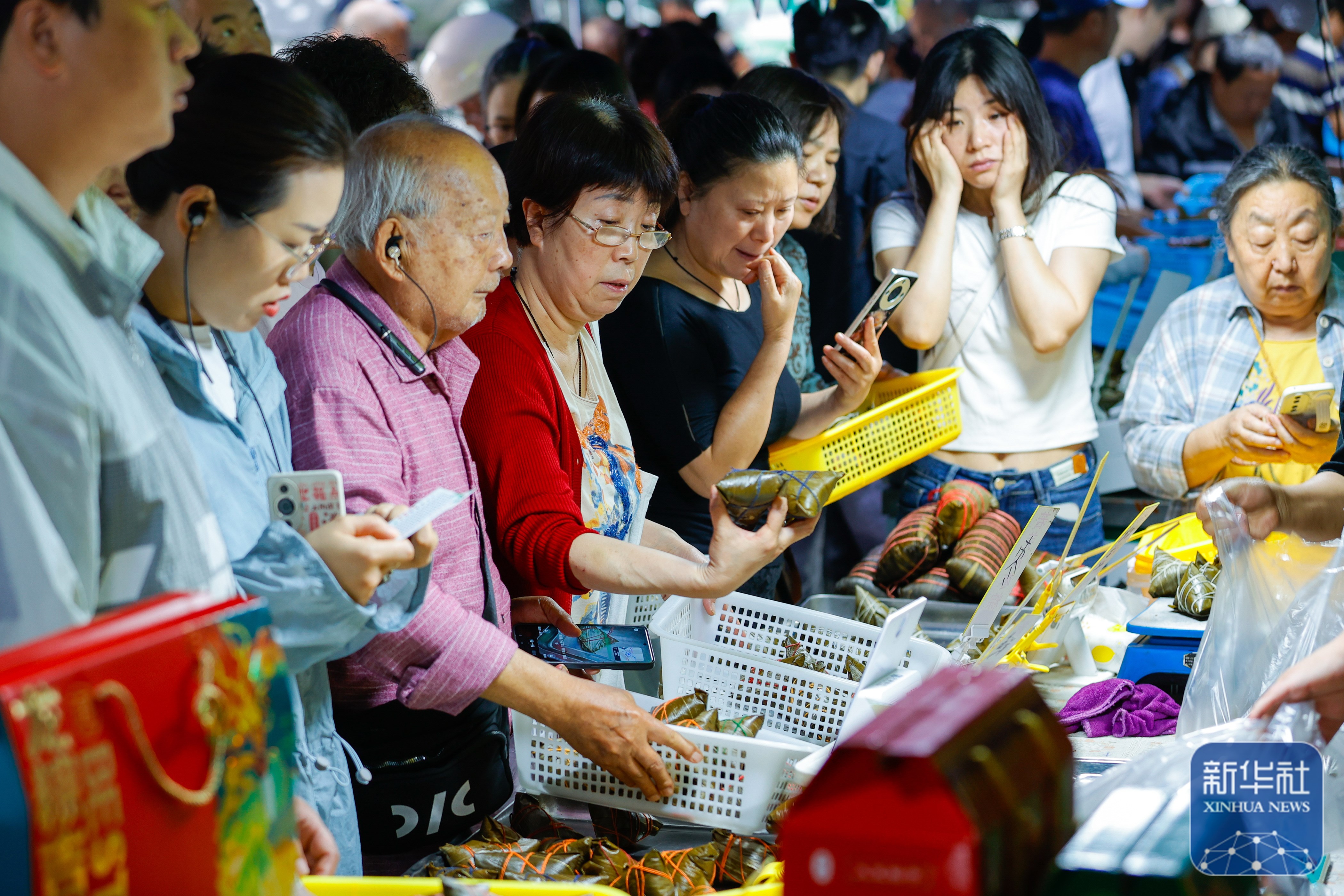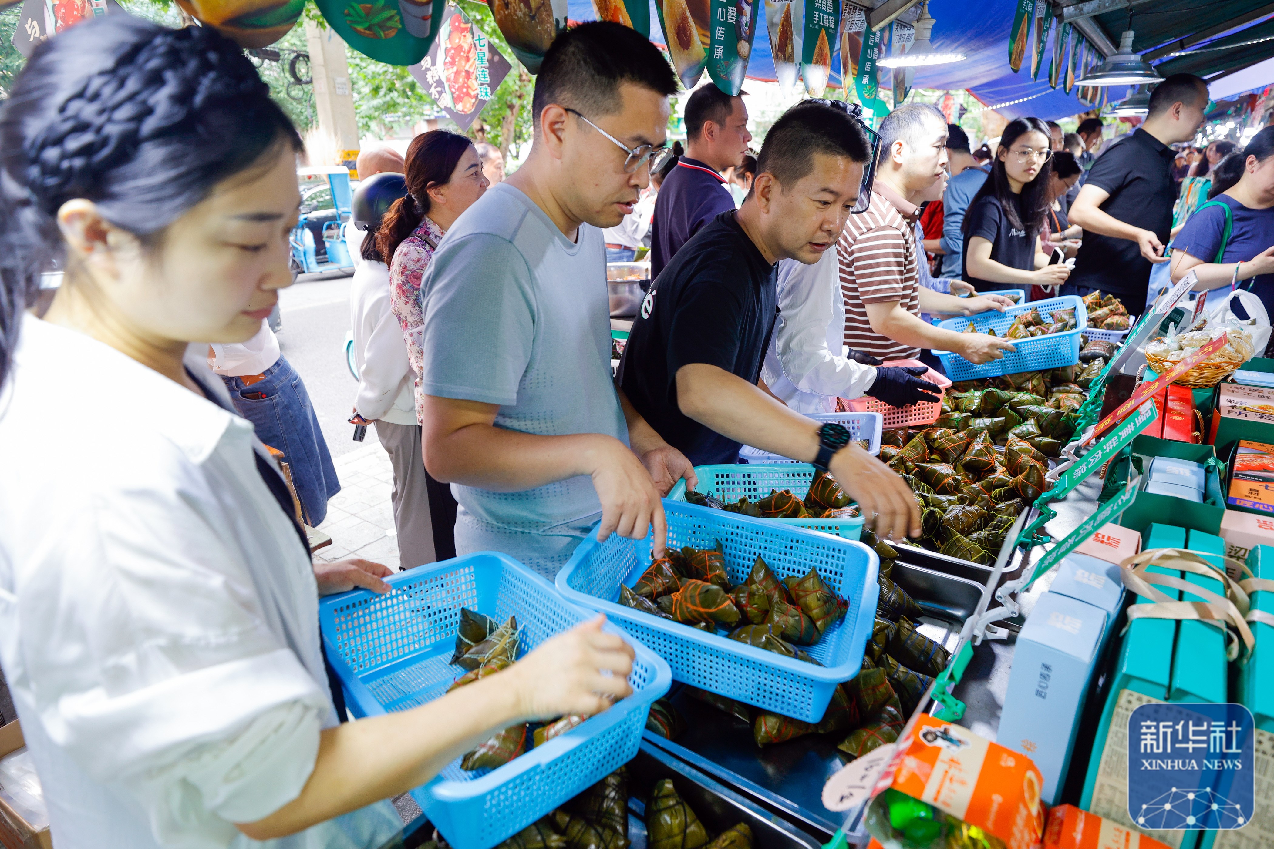 ↑6月7日,在四川省成都市的“粽子一条街”上,人们在选购粽子。新华社记者 沈伯韩 摄