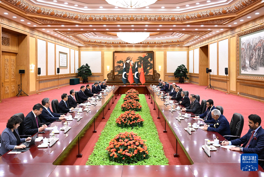 6月7日下午,国家主席习近平在北京人民大会堂会见来华正式访问的巴基斯坦总理夏巴兹。新华社记者 黄敬文 摄