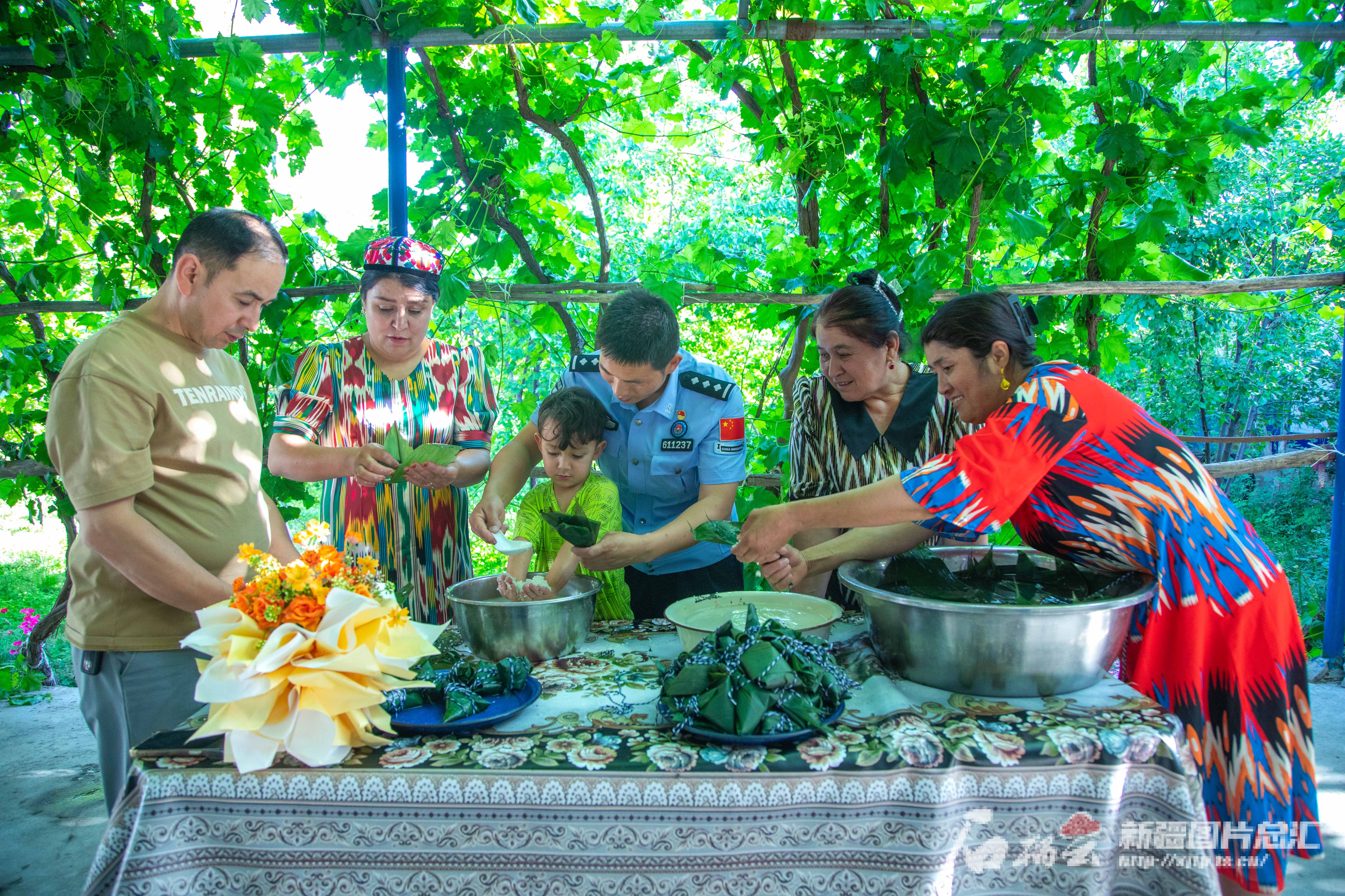6月7日,伊犁边境管理支队大西沟边境派出所民警在辖区居民家中包粽子。王鹏飞摄