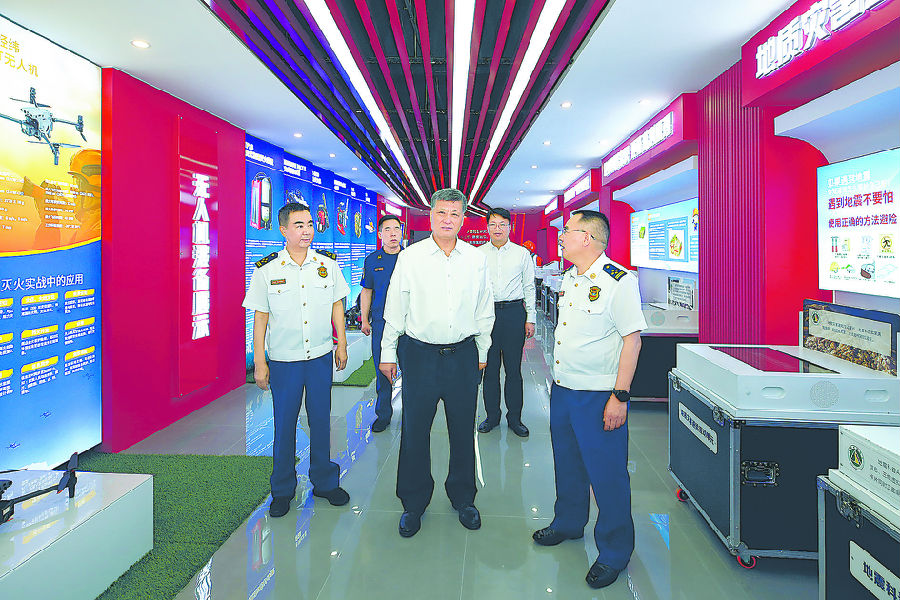 六月十二日,自治区党委书记马兴瑞走访调研有关中央驻疆单位。这是马兴瑞在新疆森林消防总队,详细了解队伍改革转制和各项工作开展情况。 石榴云\新疆日报记者 崔志坚 摄