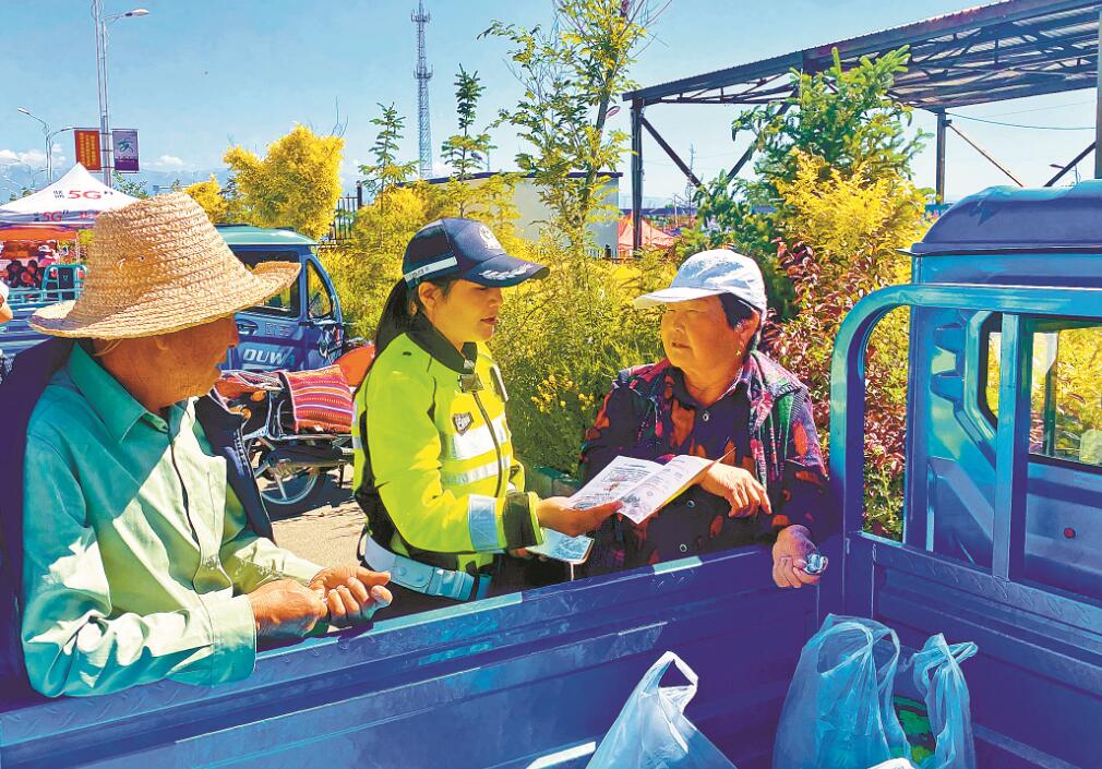 田间地头、商场集市,民警的身影几乎随处可见,他们穿梭在人群中,一遍又一遍地讲着道路交通安全知识,只为群众入脑入心,增强安全出行意识。
