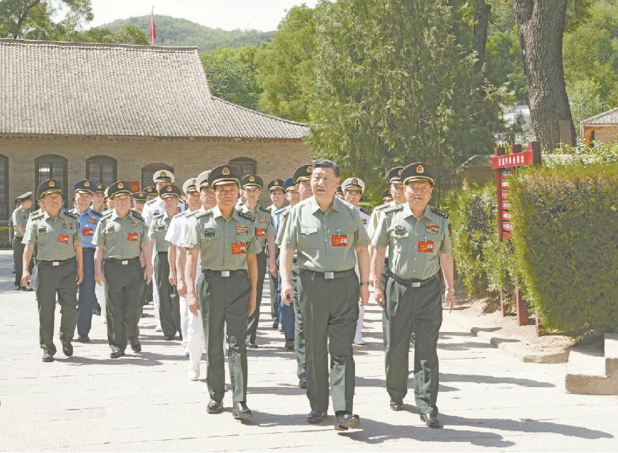 6月17日至19日,中央军委政治工作会议在陕西延安召开。中共中央总书记、国家主席、中央军委主席习近平出席会议并发表重要讲话。这是17日下午,习近平带领军委一班人和各部门各单位主要负责同志瞻仰王家坪革命旧址。 新华社记者 李刚 摄