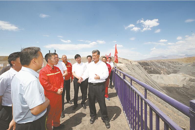 6月19日,自治区党委书记马兴瑞在吐鲁番市调研。这是马兴瑞来到吐鲁番恰特喀勒煤田火区治理现场,向相关管理部门和治理企业负责人详细询问各项工作进展。石榴云/新疆日报记者 崔志坚 摄