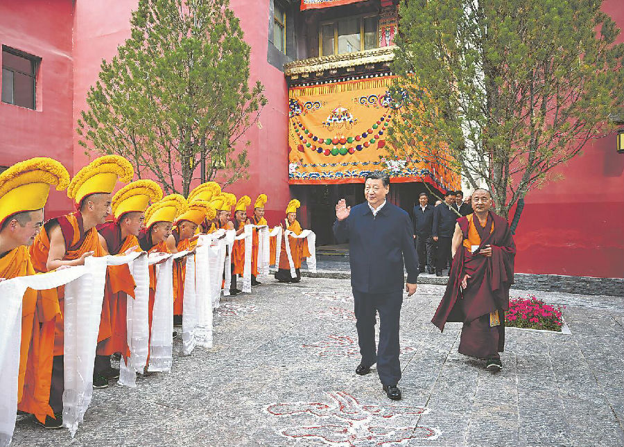 6月18日至19日,中共中央总书记、国家主席、中央军委主席习近平在青海考察。这是18日下午,习近平在位于西宁市城中区的宏觉寺考察。 新华社记者 谢环驰 摄