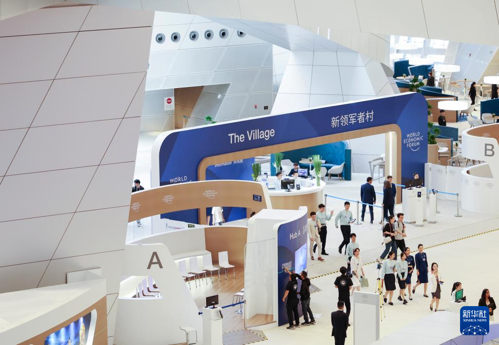 6月24日在夏季达沃斯论坛主会场大连国际会议中心拍摄的新领军者村。新华社记者 李钢 摄