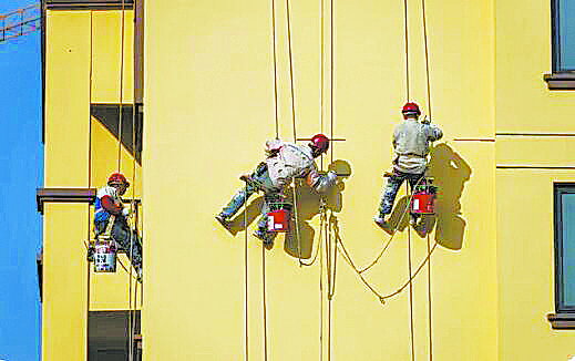 涉事的高空作业工人刘先生告诉记者,该小区外墙瓷砖大面积脱落,需要维修,他和工友接到委托进行高空作业。一业主占用楼顶建了花园,施工时可能损坏了一些花草,双方产生矛盾,工人们施工时遭到业主阻拦。
